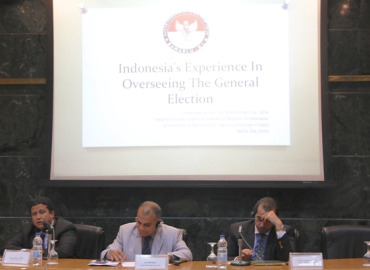 Kairo, Badan Pengawas Pemilu - Sebagai salah satu kontribusi Indonesia khususnya sebagai Penyelenggara Pemilu dalam proses demokratisasi dan berbagi pengalaman dalam pemilihan umum, Ketua Bawaslu RI, Muhammad hadir sebagai narasumber dalam kegiatan International Workhsop on Legislative Election; Indonesia’s Experience yang diadakan di Kairo, Mesir (3/3).