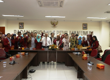 Jakarta, Badan Pengawas Pemilu - Sekitar 50 orang mahasiswa dengan memakai jas almamater merah menyambangi kantor Bawaslu RI Rabu, (14/01). Mereka adalah mahasiswa program studi Ilmu Pemerintahan, Universitas Muhammadiyah Yogyakarta (UMY) yang sedang melakukan kuliah kerja lapangan pada beberapa instansi pemerintah di Jakarta. Mereka ditemui langsung oleh pimpinan Bawaslu RI, Nasrullah, Daniel Zuchron, dan Sekretaris Jenderal Bawaslu, Gunawan Suswantoro di Ruang Musyawarah lantai 4 gedung Bawaslu RI.
