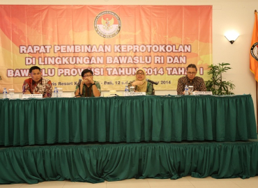 Batam, Badan Pengawas Pemilu - Bawaslu RI melaksanakan Rapat Pembinaan Keprotokolan di lingkungan Bawaslu RI dan Bawaslu Provinsi Tahun 2014 Tahap II di Hotel Swiss-Belhotel Harbour Bay Batam, Kepulauan Riau, Rabu (15/10). Kegiatan ini merupakan rangkaian dari pembinaan Keprotokolan Tahap I yang telah diselenggarakan di Bali pada 12-14 September lalu.