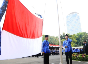 Jakarta, Badan Pengawas Pemilu - Badan Pengawas Pemilu (Bawaslu) melaksanakan Upacara untuk memperingati Hari Ulang Tahun (HUT) Kemerdekaan Republik Indonesia ke-69 di Gedung Bawaslu, Jalan MH. Thamrin No.14 Jakarta, Minggu (17/8).