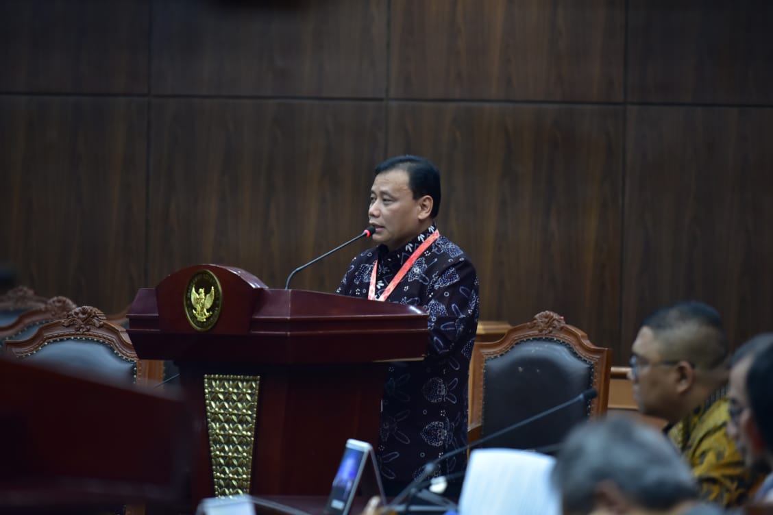 Ketua Bawaslu Abhan saat memberikan keterangan dalam sidang permohonan pengujian UU Nomor 7 Tahun 2017 di MK, Jakarta, Kamis 17 Oktober 2019/Foto: Robi Ardianto