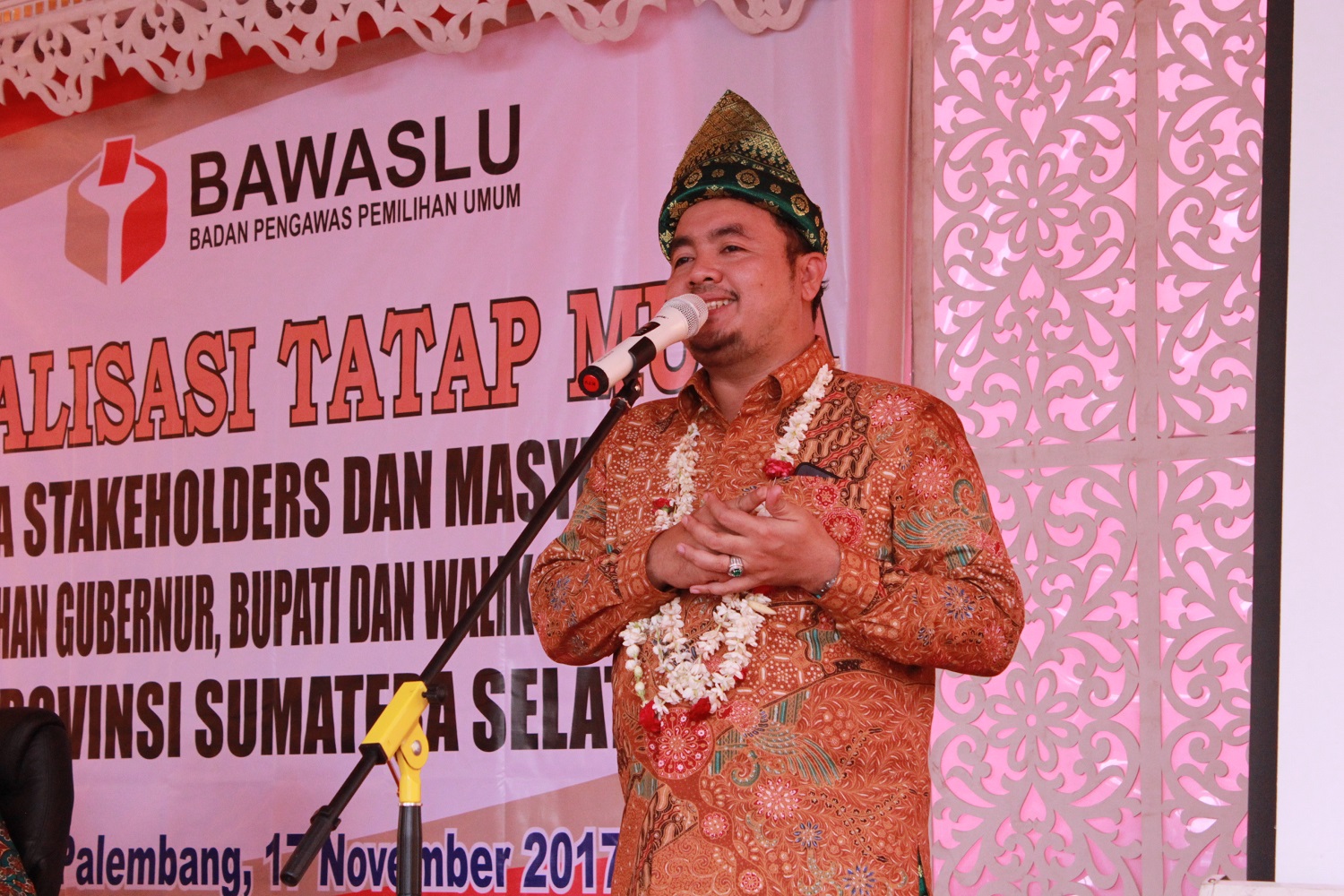 Palembang, Badan Pengawas Pemilu - Anggota Bawaslu RI Mochammad Afifuddin berharap kepada masyarakat Sumatera Selatan (Sumsel) untuk bersama Bawaslu melakukan pengawasan Pemilu. Hal tersebut dalam rangka mewujudkan Indonesia yang demokratis dan bermartabat.
