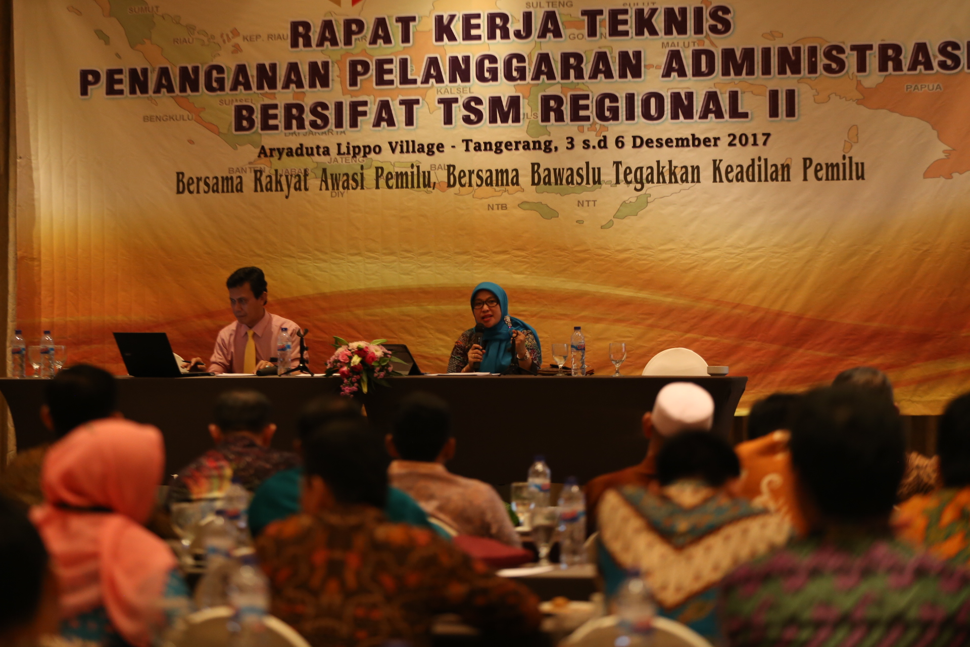 Tangerang, Badan Pengawas Pemilu - Kemampuan pengawas dalam memproses pelanggaran administrasi yang bersifat Terstruktur, Sistematis, dan Masif (TSM) sangat dibutuhkan. Maka dari itu Bawaslu menggelar Rapat Kerja Teknis (Rakernis) Penanganan Pelanggaran Administrasi Bersifat TSM Regional II di Tangerang, sejak Minggu (3/12/2017) hingga Rabu (6/12/2017).