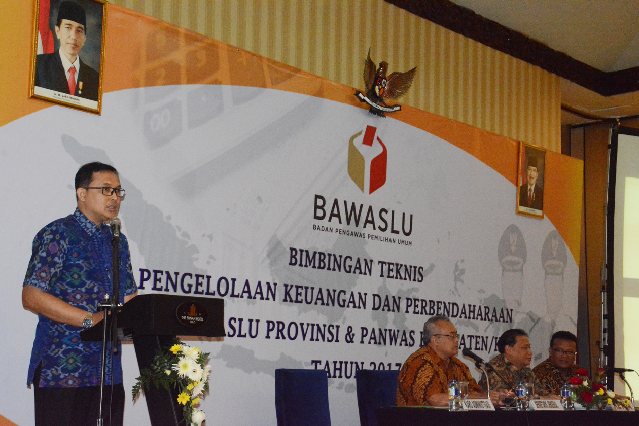 Solo, Badan Pengawas Pemilu - Sebagai wujud komitmen Bawaslu dalam menyukseskan pengelolaan dana hibah pengawasan Pilkada di daerah, Bawaslu menggelar Bimbingan Teknis (Bimtek) Pengelolaan Keuangan dan Perbendaharaan bagi Bawaslu Provinsi dan Panwas Kabupaten/Kota di Solo, Minggu (1/10/2017).