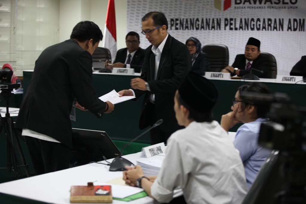 Sementara untuk terlapor yang dikuasakan kepada Indra (Staf Biro Hukum KPU), menyampaikan kesimpulan secara tertulis. "Berdasarkan Lampiran 1 Huruf R Angka 25 Surat Edaran Bawaslu Nomor 1093, pelapor menyampaikan kesimpulan secara tertulis," ujar Indra.