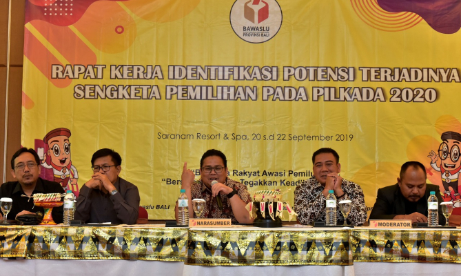 Bali, Badan Pengawas Pemilihan Umum - Koordinator Divisi Penyelesaian Sengketa Bawaslu Rahmat Bagja berharap pagelaran Pilkada Serentak 2020 berjalan lancar dan aman. Untuk itu menurutnya, perlu menambah pengetahuan jajaran divisi penyelesaian sengketa lewat pembekalan dalam bimbingan teknis (bimtek). Termasuk pelatihan bersama dengan divisi penindakan dan hakim Pengadilan Tata Usaha Negara (PTUN) sehingga lebih selaras.