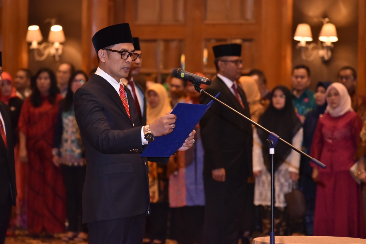 Jakarta, Badan Pengawas Pemilihan Umum - Sebanyak 29 kepala sekretariat (Kasek) Bawaslu tingkat provinsi hasil 'open bidding' atau seleksi terbuka dilantik Sekertaris Jenderal (Sekjen) Bawaslu Gunawan Suswantoro di Jakarta, Senin (30/12/2019). Sebelumnya para kasek ini telah melewati sejumlah tahapan seperti wawancara dengan panitia seleksi (pansel), dan jajaran pimpinan ketua Bawaslu tingkat provinsi dan pusat.