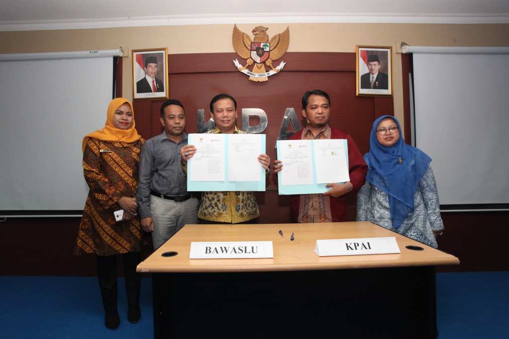 Kerja sama tersebut tertuang dalam nota kesepahaman yang ditandatangani Selasa (20/3/2018) di Kantor KPAI, Jakarta Pusat. Bawaslu dan KPAI sepakat bersinergi dalam melindungi anak pada penyelenggaraan Pilkada dan Pemilu sebab Undang-Undang Nomor 35 Tahun 2014 tentang Perlindungan anak mengatur bahwa perlindungan gak anak adalah kewajiban dan tanggung jawab negara.