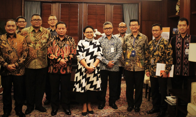 Jakarta, Badan Pengawas Pemilu - Ketua dan Anggota Bawaslu RI beserta jajaran Struktural Bawaslu mengunjungi kantor Kementerian Luar Negeri (Kemenlu), Kamis (18/1/2017). Perwakilan Bawaslu diterima langsung oleh Menteri Luar Negeri Retno Marsudi di Ruang Rapat Gedung Kementerian Luar Negeri.