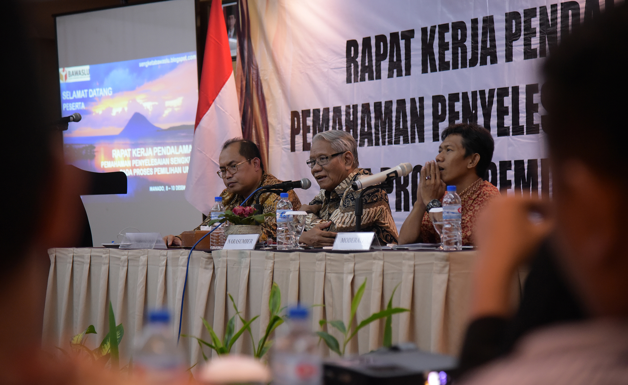 Dihadapan Pengawas Pemilu tingkat provinsi dan kabupaten/kota se-Provinsi Sulawesi Utara dan Provinsi Papua, mantan Wakil Ketua Mahkamah Konstitusi tersebut juga menjelaskan bahwa Pengawas Pemilu harus senantiasa mampu bersikap independen, setiap menghadapi suatu permasalahan saat menjalankan tugas dan amanah.