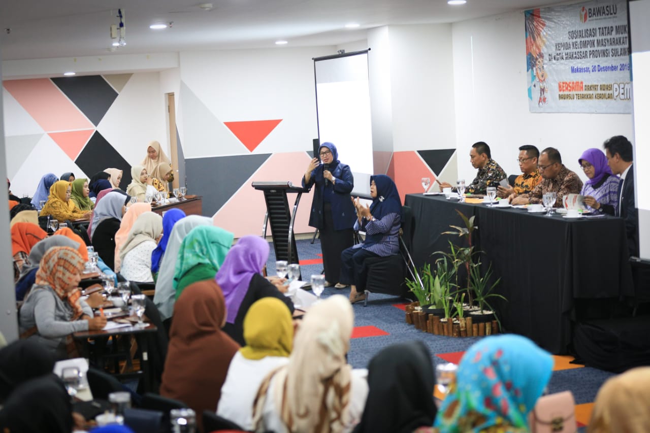Anggota Bawaslu Ratna Dewi Pettalolo saat memberikan pengarahan dalam acara Sosialisasi Tatap Muka kepada Masyarakat Kelompok Rentan di Makassar Sulawesi Selatan, Jumat 20 Desember 2019/Foto: Muhtar