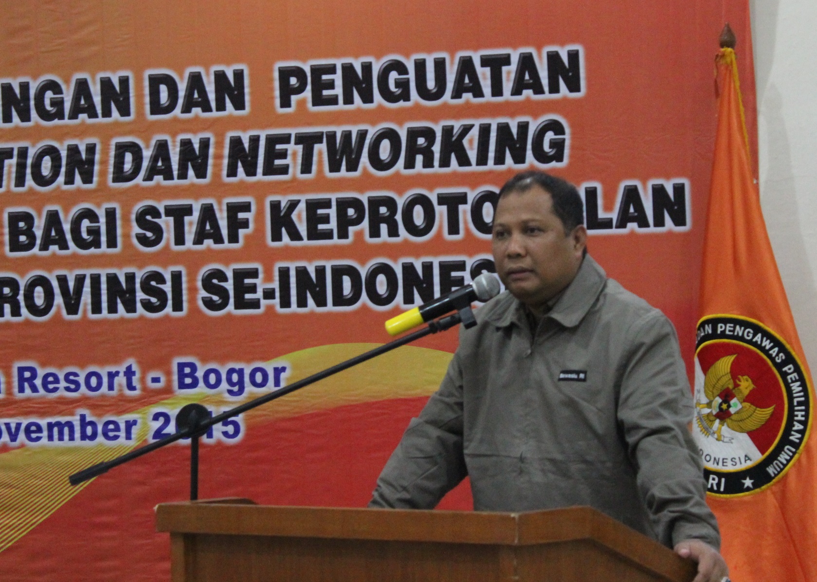 Bogor, Badan Pengawas Pemilu- Dalam rangka meningkatkan kapasitas keprotokolan di Bawaslu RI, digelar Rapat Koordinasi Pengembangan dan Penguatan Interpersonal Communication dan Networking Serta Penanganan Unjuk Rasa Bagi Staf Keprotokolan Bawaslu RI dan Bawaslu Provinsi se-Indonesia di Bogor sejak Senin (16/11) hingga Rabu (18/11). Disampaikan Pimpinan Bawaslu RI Nasrullah dalam acara pembukaan, keberadaan protokoler di Bawaslu mutlak diperlukan.