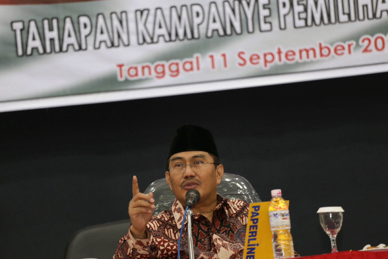 “Tempat ibadah contohnya. Tempat ibadah jangan dilakukan sebagai ajang kampanye, apalagi pada kegiatan yang bertepatan pada ibadah. Penceramah jangan melakukan ajakan komunikasi yang bersifat mendukung salah satu pasangan calon. Apalagi disebutkan visi dan misi oleh pasangan calon tersebut,” jelas Jimly.