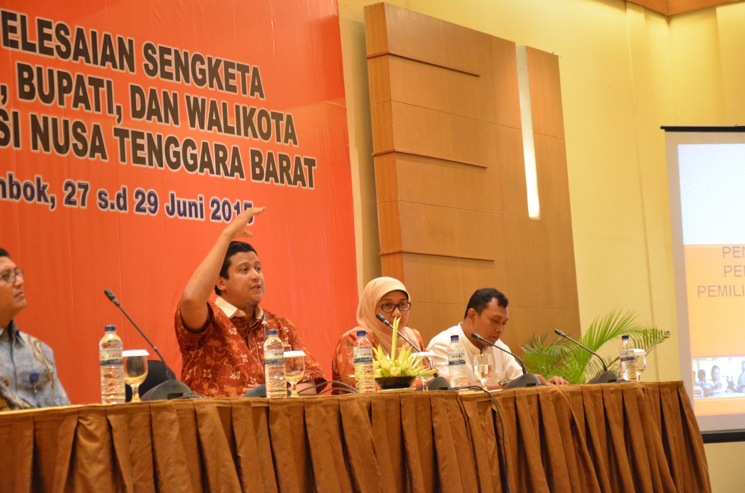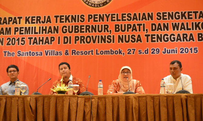 Lombok, Badan Pengawas Pemilu – Ketua Badan Pengawas Pemilu (Bawaslu) RI Muhammad menekankan bahwa keberhasilan proses pengawasan pemilu tidak diukur pada berapa banyak jumlah pelanggaran yang bisa ditemukan.Para pengawas pemilu diminta untuk lebih fokus pada pelaksanaan tugas utama pengawas, yakni mencegah terjadinya pelanggaran. Demikian ungkap Muhammad saat menutup kegiatan Rapat Kerja Teknis (Rakernis) Penyelesaian Sengketa Dalam Pemilihan Gubernur, Bupati, dan Walikota Tahun 2015 Tahap I di Lombok, Nusa Tenggara Barat, Minggu (28/6) malam.
