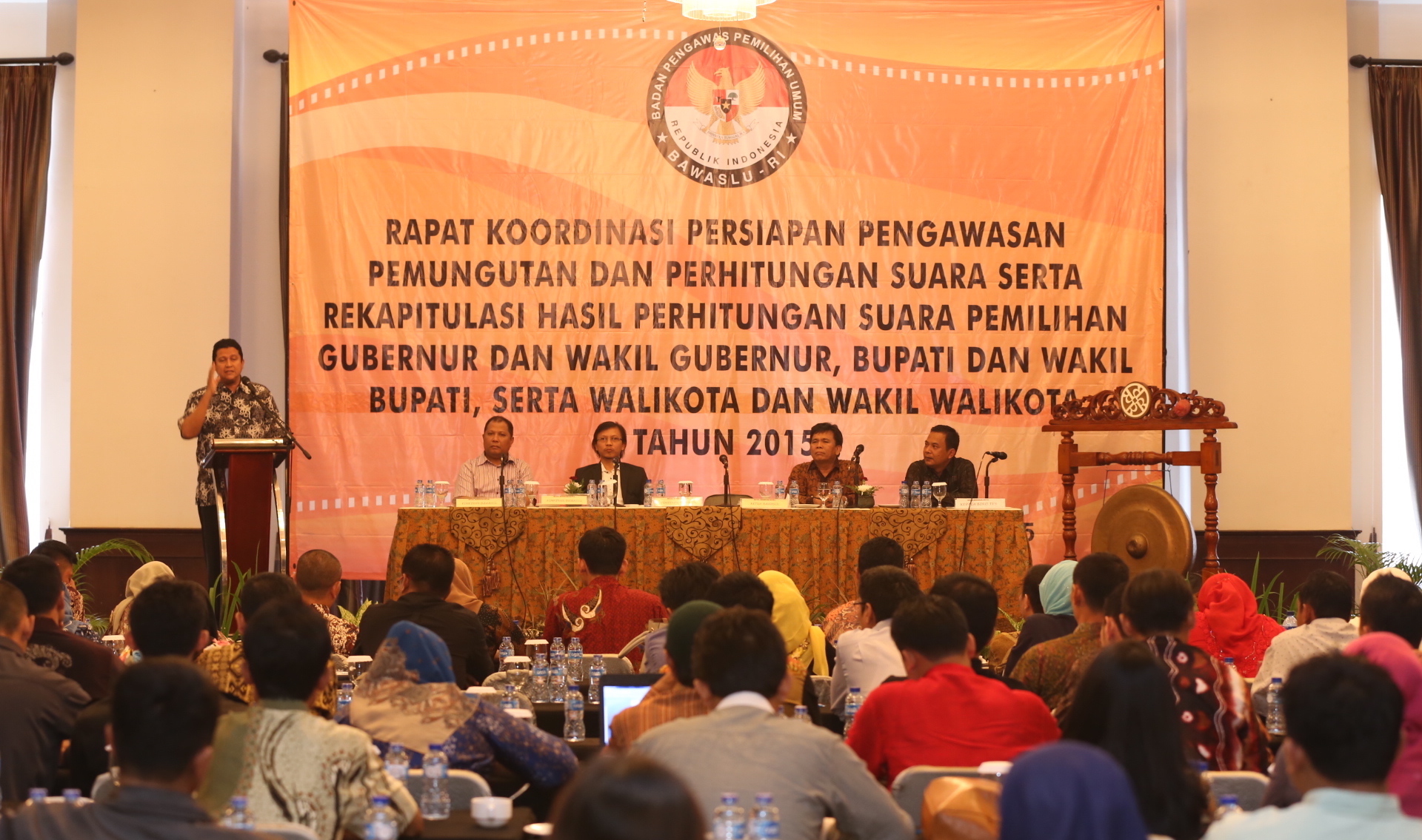 Sementara itu, Kepala Biro TP3, Bernard D. Sutrisno dalam sambutan panitia mewakili Sekretaris Jenderal Bawaslu RI menyatakan bahwa tujuan Rakor Persiapan Pungut Hitung dan Rekapitulasi Hasil Perhitungan Suara Pilkada 2015 ini adalah untuk menginventarisasi peta kerawanan TPS sebagai upaya pencegahan terjadinya pelanggaran pada tahapan puncak Pilkada dan juga untuk mensosialisasikan petunjuk teknis pengawasan tahapan pungut hitung dan rekapitulasi hasil penghitungan suara Pilkada 2015.