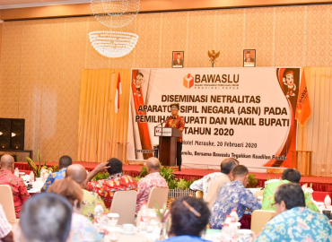 Jakarta, Badan Pengawas Pemilihan Umum - Pelanggaran yang terjadi pada Pemilu 2019 berpotensi akan terulang dalam Pilkada Serentak 2020. Ketua Bawaslu Abhan menyebutkan, bentuk pelanggaran tersebut seperti praktik politik uang, ujaran kebencian, dan netralitas Aparatur Sipil Negara (ASN).