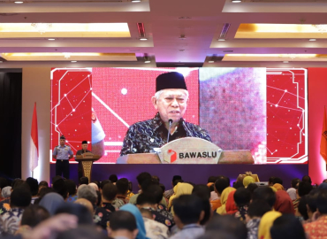 Jakarta, Badan Pengawas Pemilihan Umum - Wakil Presiden Republik Indonesia Ma'ruf Amin mengimbau supaya ajang pemilihan umum (pemilu) tidak dijadikan sumber perpecahan, permusuhan, dan membuat suasana kehidupan masyarakat tidak kondusif. Menurutnya, tujuan sejati pemilu adalah untuk mensejahterakan rakyat dan memajukan negara, bukan untuk meraih kekuasaan.