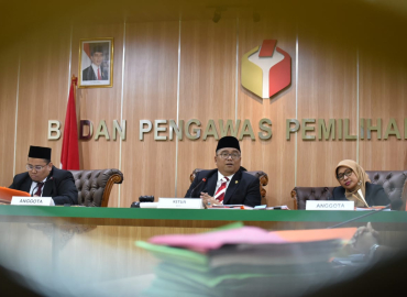 Jakarta, Badan Pengawas Pemilihan Umum - Ketua Majelis Abhan dan Anggota Majelis M Afifuddin melanjutkan sidang laporan dugaan pelanggaran adminitrasi pemilu Nomor 31/LP/PL/ADM/RI/00.00/V/2019 dengan agenda pemeriksaan alat bukti. Dalam perkara pemilihan legislatif (pileg) di Kabupaten Boyolali dan Kabupaten Sukoharjo yang termasuk daerah pemilihan (dapil) V Jawa Tengah (Jateng) calon anggota DPR RI, KPU selaku pihak terlapor menyerahkan empat kardus alat bukti.
