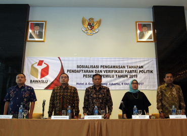Jakarta, Badan Pengawas Pemilu- Mengundang seluruh partai politik yang terdaftar di Kementerian Hukum dan Hak Asasi Manusia, Badan Pengawas Pemilu (Bawaslu) menggelar kegiatan Sosialisasi Pengawasan Tahapan Pendaftaran dan Verifikasi Partai Politik Peserta Pemilu Tahun 2019 di Jakarta, Senin (9/10/2017). Pada tahapan pendaftaran partai politik peserta pemilu, Ketua Bawaslu, Abhan mewanti-wanti seluruh parpol agar cermat dalam memenuhi persyaratan pendaftaran sebagaimana ketentuan peraturan perundang-undangan.