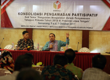Semarang, Badan Pengawas Pemilu - Bawaslu menilai keberadaan partisipasi pengawasan masyarakat/ stakeholder diluar penyelenggara sangat penting dalam mewujudkan pemilihan kepala daerah yang bersih, berkualitas, dan bermartabat untuk memperoleh pemimpin yang amanah dan bersih. Atas dasar itu, dalam rangka penguatan masyarakat dalam pengawasan tahapan Pilkada Tahun 2018 di Provinsi Jawa Tengah, Bawaslu menggelar diskusi Konsolidasi Pengawasan Partisipatif di Semarang, Jumat (6/10/2017).