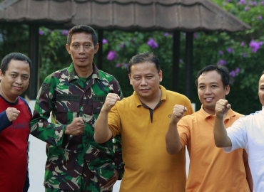 Bogor, Badan Pengawas Pemilu-Ketua Bawaslu RI, Abhan melakukan senam pagi bersama para anggota Bawaslu Provinsi terpilih masa jabatan 2017-2022 di halaman Aston Bogor Hotel ann Resort, Bogor, Jawa Barat, Minggu (24/9/2017). Senam tersebut dipimpin oleh instruktur Markas Komando dan Latihan Pasukan Pengaman Presiden (Makodenlat Paspamres) Group C.