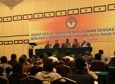 Jakarta, Badan Pengawas Pemilu - Guna mematangkan jajaran pengawas pemilihan di tingkat kabupaten/kota dalam menyelesaikan sengketa pemilihan pada Pilkada 2017 mendatang, Bawaslu RI menggelar Rapat Kerja Teknis (Rakernis) Penyelesaian Sengketa Pemilihan Gubernur, Bupati, dan Walikota Tahun 2017 selama tiga hari sejak Senin (29/8) hingga Rabu (31/8) di Hotel Golden Boutiqe Jakarta.