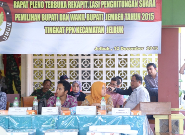 Jember, Badan Pengawas Pemilu – Tiga hari setelah pemungutan suara Pilkada Serentak Tahun 2015, Pimpinan Bawaslu RI, Nasrullah memantau rekapitulasi penghitungan suara tingkat kecamatan. Nasrullah didampingi Bawaslu Provinsi Jawa Timur, Panwaslu Kabupaten Jember, pejabat struktural dari Bawaslu RI dan tim asistensi Bawaslu RI menyisir beberapa kabupaten di Provinsi Jawa Timur yang menggelar pilkada mulai hari Jumat (10/12) hingga Senin (14/12).