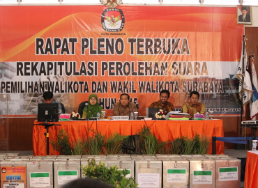 Surabaya, Badan Pengawas Pemilu - Setelah memenuhi berbagai tahapan pemilihan walikota dan wakil walikota Surabaya tahun 2015, akhirnya KPU Kota Surabaya menggelar Rapat Pleno Terbuka Rekapitulasi Perolehan Suara Pemilihan Walikota dan Wakil Walikota Surabaya Tahun 2015 di Aula Kantor KPU Surabaya guna menentukan siapa yang akan memimpin Surabaya lima tahun ke depan, Rabu (16/12).