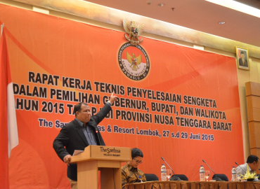 Lombok, Badan Pengawas Pemilu – Ketua Badan Pengawas Pemilu (Bawaslu) RI Muhammad menekankan bahwa keberhasilan proses pengawasan pemilu tidak diukur pada berapa banyak jumlah pelanggaran yang bisa ditemukan.Para pengawas pemilu diminta untuk lebih fokus pada pelaksanaan tugas utama pengawas, yakni mencegah terjadinya pelanggaran. Demikian ungkap Muhammad saat menutup kegiatan Rapat Kerja Teknis (Rakernis) Penyelesaian Sengketa Dalam Pemilihan Gubernur, Bupati, dan Walikota Tahun 2015 Tahap I di Lombok, Nusa Tenggara Barat, Minggu (28/6) malam.