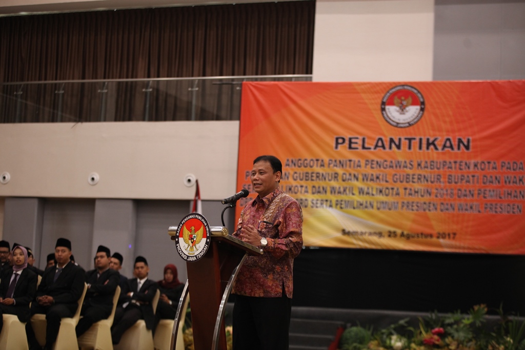 Semarang, Badan Pengawas Pemilu - Ketua Bawaslu RI Abhan menghadiri pelantikan anggota Panitia Pengawas se-Provinsi Jawa Tengah di MG Setos Hotel, Semarang, Jawa Tengah, Jumat (25/8/2017). Abhan mengatakan, anggota Panwas Kabupaten/Kota yang dilantik ini mempunyai tugas yang sangat berat karena akan melakukan pengawasan pada pilkada serentak 2018, pengawasan pemilihan legislatif dan pemilihan presiden.