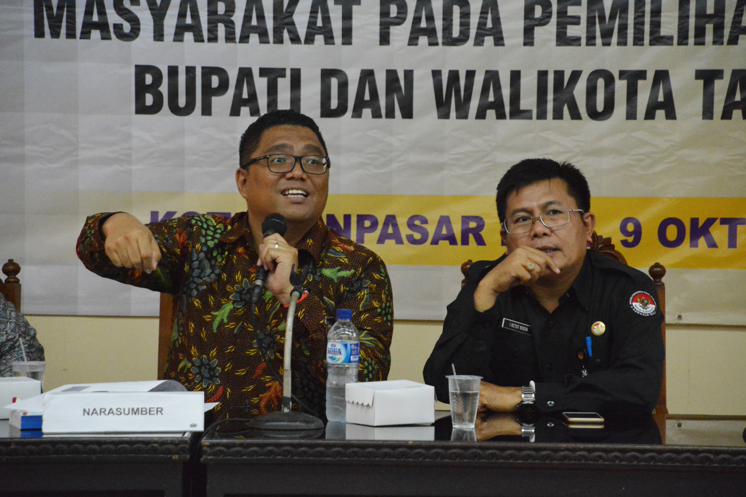 Sosialisasi tatap muka ini diikuti oleh KPU Provinsi/Kabupaten/Kota se-Bali, Sekretaris Daerah se Provinsi Bali, Kepala Kesbangpol se Provinsi Bali, Kepala Satpol PP se Provinsi Bali, Ketua Partai Politik, Kapolda Bali, Kapolres, Ketua DPRD se Provinsi Bali, Kepala Kejaksaan Tinggi, Kepala Kejaksaan Negeri, organisasi masyarakat, Pimpinan Redaksi baik cetak maupun elektronik se-Provinsi Bali.