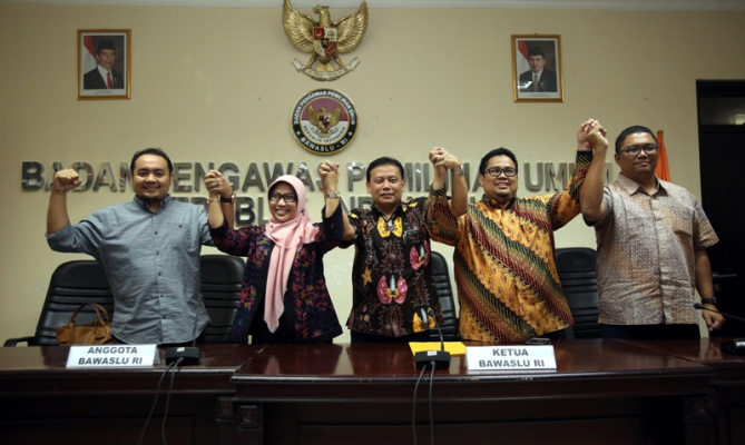 Jakarta, Badan Pengawas Pemilu – Melalui mekanisme rapat pleno 5 (lima) anggota terpilih Badan Pengawas Pemilu Republik Indonesia (Bawaslu RI) periode 2017 – 2022 di Kantor Bawaslu RI, Kamis (13/4), akhirnya pimpinan Bawaslu RI memilih dan menetapkan Abhan, SH sebagai Ketua Bawaslu RI periode 2017 - 2022.