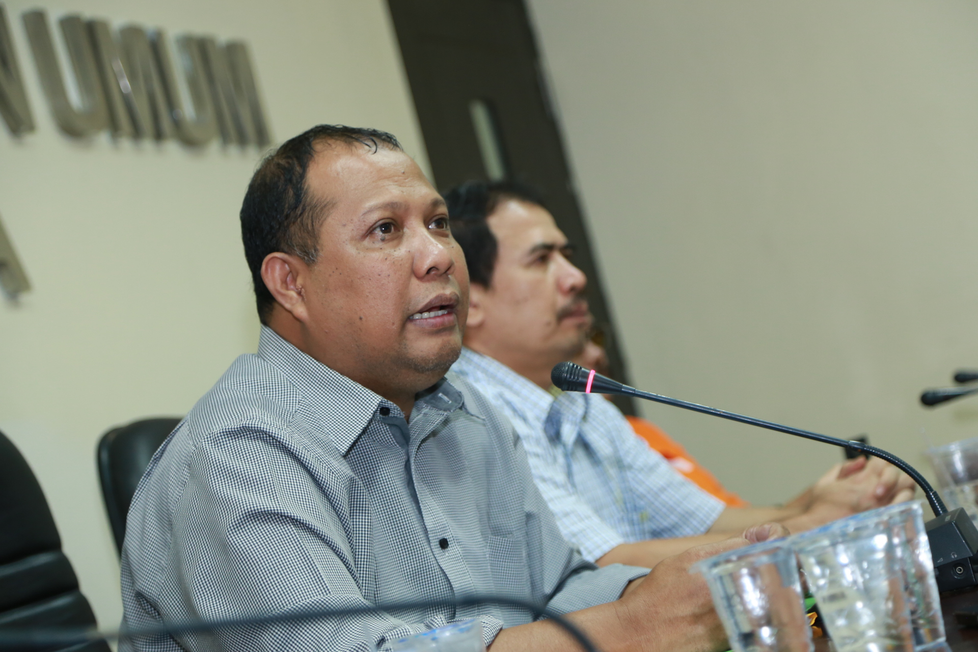 Anggota Bawaslu RI Nasrullah saat menggelar konferensi pers terkait persiapan Bawaslu Award 2016, Minggu (28/02) di Media Center Bawaslu RI. Bawaslu Award 2016 ini rencananya digelar pada hari Senin 29 Februari 2016 mulai pukul 19.00 di Balai Sarbini Jakarta.