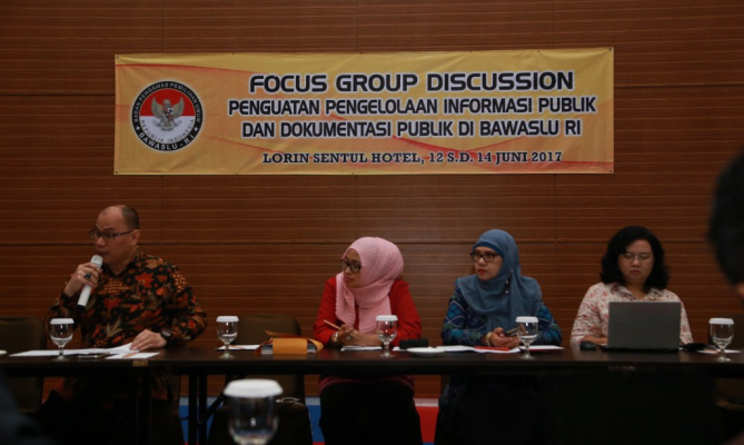 Bogor, Badan Pengawas Pemilu – Badan Pengawas Pemilu menggelar Focus Group Discussion (FGD) Penguatan Pengelolaan Informasi dan Dokumentasi Publik di Bawaslu RI yang bertujuan untuk peningkatan keterbukaan informasi publik di Bawaslu, di Bogor, Selasa (13/6/2017). Anggota Bawaslu RI, Mochammad Afifuddin menyatakan salah satu tuntutan publik sekarang ini adalah transparansi serta akuntabilitas dimana Bawaslu harus mampu menyesuaikan dengan hal tersebut.