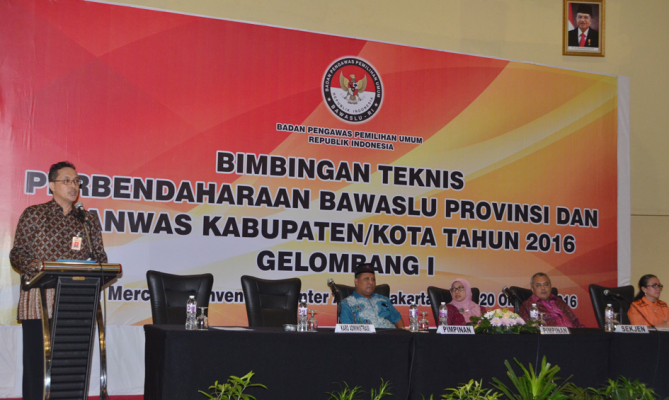Jakarta, Badan Pengawas Pemilu – Badan Pengawas Pemilihan Umum (Bawaslu) menyelenggarakan Bimbingan Teknis (Bimtek) Perbendaharaan Bawaslu Provinsi dan Panwas Kabupaten/Kota Tahun 2016 Gelombang I di Mercure Convention Centre, Jakarta. Hal mendasar diselenggarakannya Bimtek ini yaitu dana hibah yang berasal dari APBD Kabupaten/Kota untuk pemilihan bupati dan wakil bupati/walikota dan wakil walikota atau APBD provinsi untuk pemilihan gubernur dan wakil gubernur yang melaksanakan Pilkada serentak Tahun 2017, harus dipertanggungjawabkan dalam APBN. Demikian sebagaimana diatur dalam Peraturan Menteri Dalam Negeri Nomor 44 Tahun 2015 tentang pengelolaan dana kegiatan pemilihan gubernur dan wakil gubernur, bupati dan wakil bupati serta walikota dan wakil walikota sebagaimana telah diubah melalui Peraturan Menteri Menteri Dalam Negeri (Permendagri) Nomor 51 Tahun 2015 tentang perubahan atas Permendagri Nomor 44 Tahun 2015.