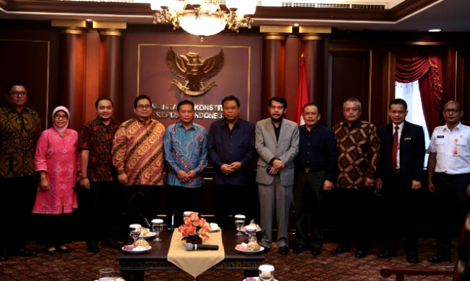 Jakarta, Badan Pengawas Pemilihan Umum – Ketua dan Anggota Bawaslu RI, Sekretaris Jenderal Bawaslu, serta Pejabat Struktural Bawaslu melakukan Audiensi dengan Ketua dan Wakil Ketua, dan Hakim Mahkamah Konstitusi (MK) di Ruang Rapat Mahkamah Konstitusi, Lantai 5, Jakarta Pusat, Rabu (10/5).