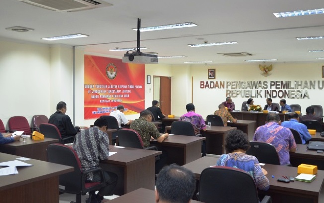 Tes tertulis ini diawasi langsung oleh Sekjen Bawaslu RI Gunawan Suswantoro didampingi oleh Ketua Pansel Profesor Saldi Isra, Anggota Pansel Profesor Siti Zuhro dan anggota Pansel lainnya Djatmiko dari BKN