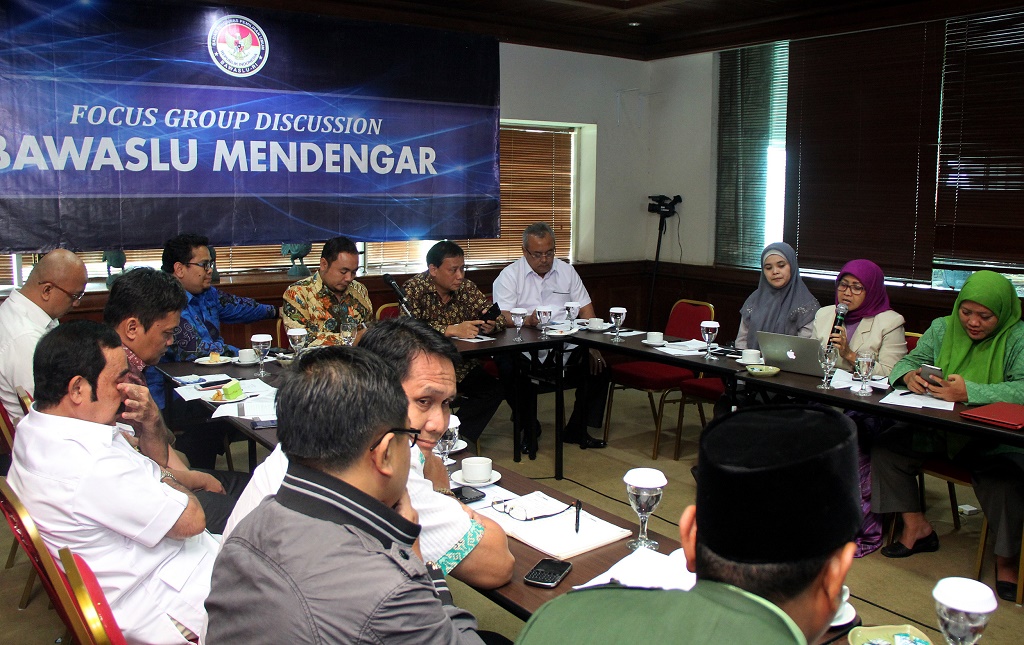 Jakarta, Badan Pengawas Pemilu - Bawaslu RI kembali menggelar diskusi kelompok terarah Bawaslu Mendengar Tahap II dengan mengundang partai politik (parpol), organisasi masyarakat (ormas) dan Komite I Dewan Perwakilan Daerah Republik Indonesia di The Media Hotel, Jakarta, Rabu (3/5). Hadir dalam kegiatan ini Ketua Bawaslu RI Abhan, Anggota Bawaslu RI Mochammad Afifuddin dan Rahmat Bagja, serta Sekretaris Jenderal Bawaslu RI Gunawan Suswantoro.