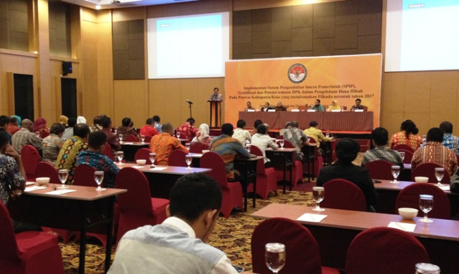 Makassar, Badan Pengawas Pemilu - Sehubungan dengan semakin dekatnya Pilkada Serentak tahun 2017, Bawaslu RI mengundang Komisioner dan Kepala Sekertariat Bawaslu Provinsi dan juga Panwaslih Kabupaten/Kota dalam kegiatan Implementasi SPIP (Sistem Pengendalian Intern Pemerintah), Implementasi Gratifikasi dan Potensi Temuan BPKP (Badan Pengawasan Keuangan dan Pembangunan) di lingkungan Panwas Kabupaten/Kota yang menyelenggarakan Pilkada Serentak tahun 2017 di Hotel Swiss-Bell inn Makassar, Jum’at (23/09).