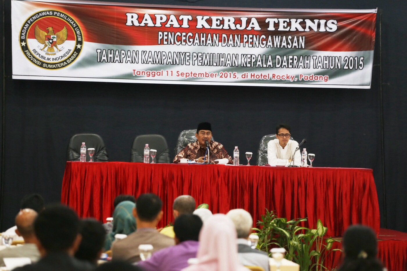 Padang, Badan Pengawas Pemilu – Badan Pengawas Pemilu (Bawaslu) Provinsi Sumatera Barat mengelar Rapat Kerja Teknis Pencegahan dan Pengawasan Tahapan Kampanye Pemilihan Kepala Daerah Tahun 2015. Rapat tersebut digelar sebagai upaya pencegahan pelanggaran dalam memasuki tahapan kampanye  pemilihan gubernur dan bupati/walikota di Provinsi Sumatera Barat.