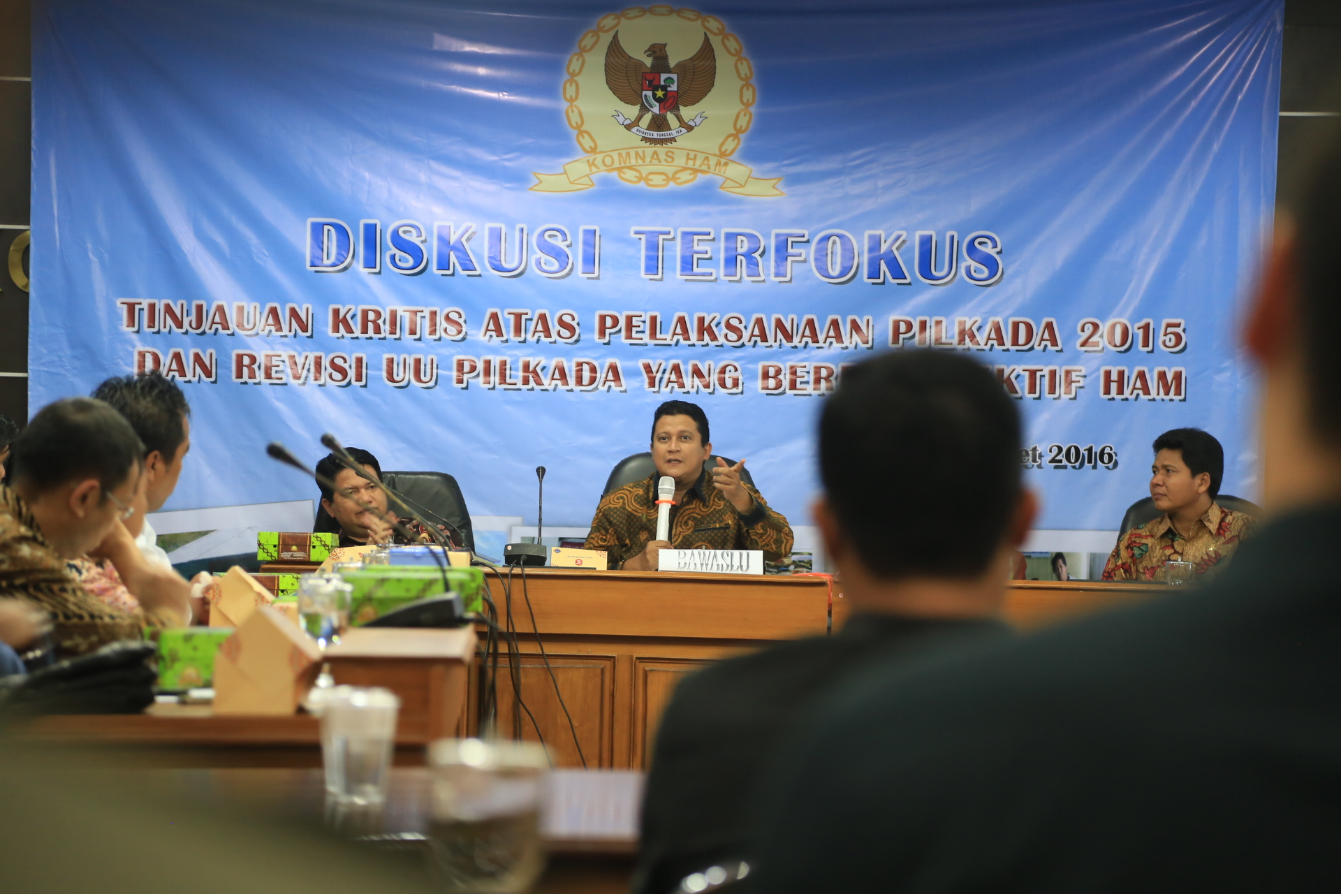 Pada kesempatan yang sama, Ketua Tim Pemantauan Pilkada Komnas HAM Dianto Bachriadi merilis hasil pantauannya atas situasi umum penyelenggaraan Pilkada 2015 yang lalu. Menurutnya pada pelaksanaan Pilkada 2015, Komnas HAM telah melakukan pantauan di 17 wilayah, yaitu Sumatera Utara, Banten, Lampung, Jawa Barat, Jawa Tengah, Yogyakarta, Jawa Timur, Kalimantan Barat, Sumatera Barat, Bali, Sulawesi Selatan, Sulawesi Barat, Sulawesi Tengah, Papua, Nusa Tenggara Timur, Maluku, dan Maluku Utara.