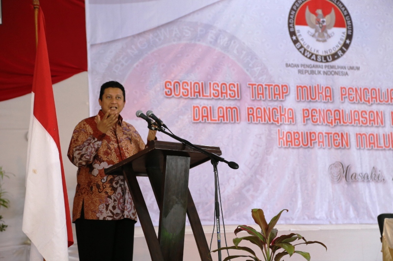 Kegiatan sosialisasi tersebut dihadiri oleh Ketua Bawaslu RI Prof. Muhammad, anggota Komisi II DPR RI Arteria Dahlan dan Komaruddin Watubun, Bupati Maluku Tengah Tuasikal Abua, dan Kapolres Maluku Tengah Harley Silalahi.