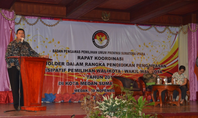 Medan, Badan Pengawas Pemilu – Fenomena keterlibatan dukungan ASN yang ada di birokrasi dalam perhelatan demokrasi di Indonesia terus menjadi salah satu fokus pengawasan Bawaslu RI. Banyaknya jumlah petahana yang maju dalam Pilkada 2015 mengakibatkan besarnya potensi memposilitasi birokrasi.