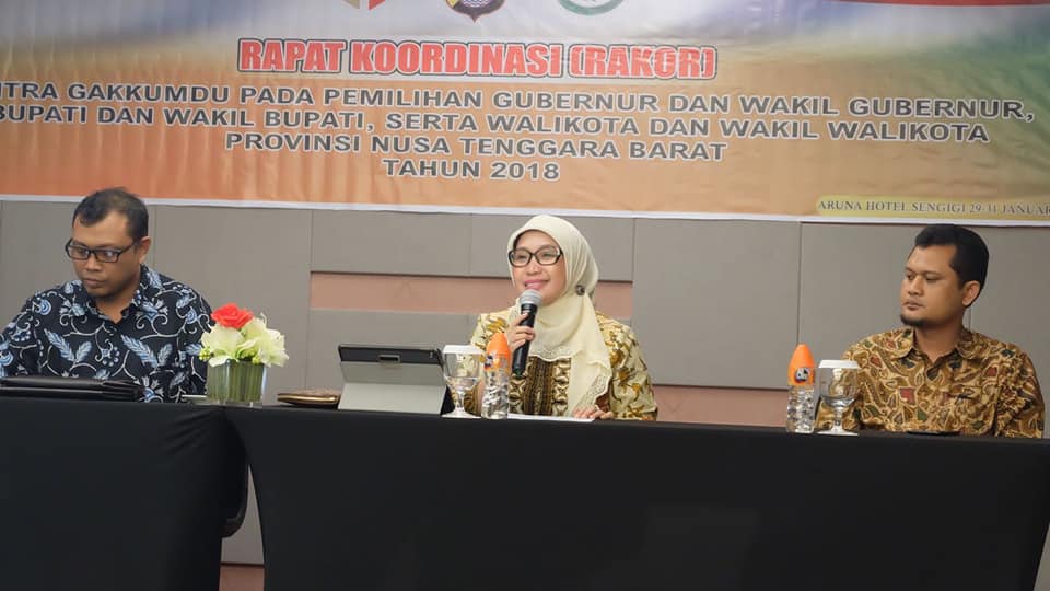 “Tiga institusi yang tergabung dalam Sentra Gakkumdu merupakan salah satu penentu dari kualitas Pemilu karena diamanahkan Undang-Undang Nomor 7 Tahun 2017 menjadi penegak hukum Pemilu. Maka ketiga institusi ini harus membangun komitmen agar Sentra Gakkumdu ini berjalan dengan baik," ujar Dewi pada Rapat Koordinasi Sentra Gakkumdu pada Pemilihan Gubernur dan Wakil Gubernur, Bupati dan Wakil Bupati, serta Walikota dan Wakil Walikota Provinsi Nusa Tenggara Barat, Selasa (30/1/2018).