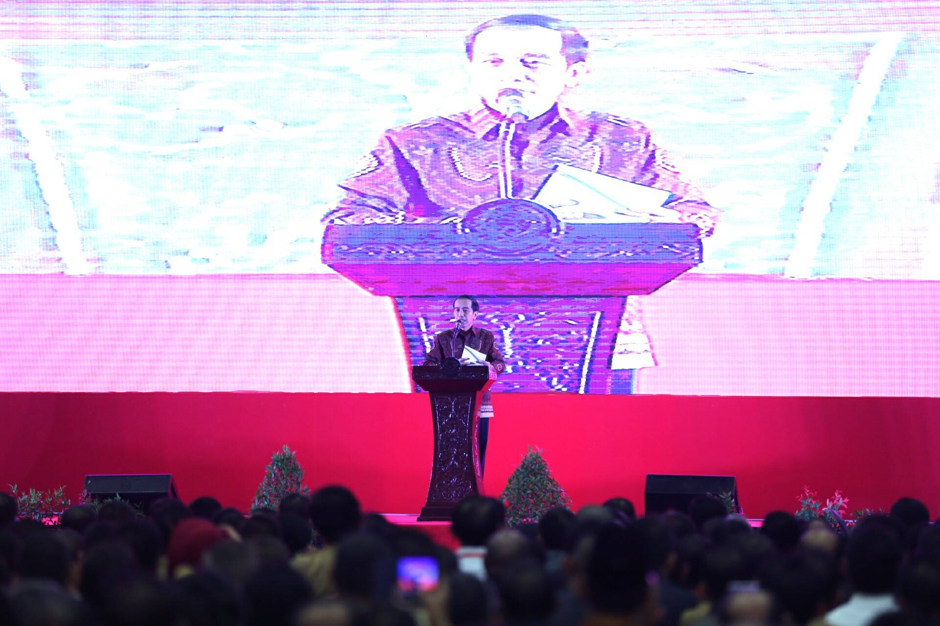 Presiden RI Joko Widodo memberikan sambutan dalam acara Rakornas Pemantapan Pelaksanaan Pilkada Serentak Tahun 2015 di Econvention Jakarta, Kamis (12/11).
