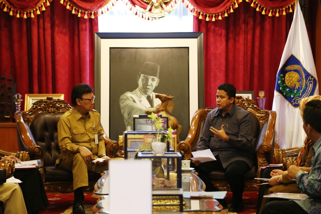 Ketua Bawaslu RI, Muhammad menyampaikan Indeks Kerawanan Pemilihan Gubernur, Bupati dan Walikota Tahun 2017 kepada Menteri Dalam Negeri Tjahjo Kumolo, di Kantor Kemendagri, Jakarta, Senin (22/8).