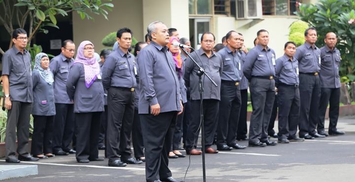 Jakarta, Badan Pengawas Pemilu - Sekretaris Jenderal Bawaslu Gunawan Suswantoro memimpin Apel Senin minggu ke-IV Bulan Januari, di halaman parkir gedung Bawaslu, (26/1). Dalam pidatonya, Gunawan memberikan beberapa arahan serta motivasi bagi pegawai sekretariat Bawaslu dalam pekerjaan.