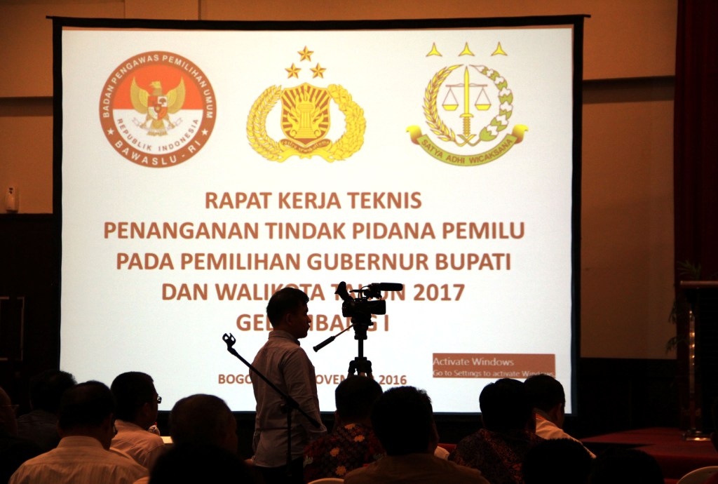 Bogor, Badan Pengawas Pemilu – Menindaklanjuti penandatanganan Peraturan Bersama Sentra Penegakan Hukum Terpadu (Sentra Gakkumdu) pada 21 November silam, Badan Pengawas Pemilu menggelar Rapat Kerja Teknis (Rakernis) Penanganan Tindak Pidana Pemilu pada Pemilihan Gubernur, Bupati dan Walikota Tahun 2017 atau Rakernis Sentra Gakkumdu di Bogor, Jawa Barat. Rakernis ini bertujuan untuk memperkuat pemahaman seluruh unsur yang ada di Sentra Gakkumdu, baik Bawaslu, Kepolisian, maupun Kejaksaan tentang teknis pelaksanaan penanganan tindak pidana pemilu.