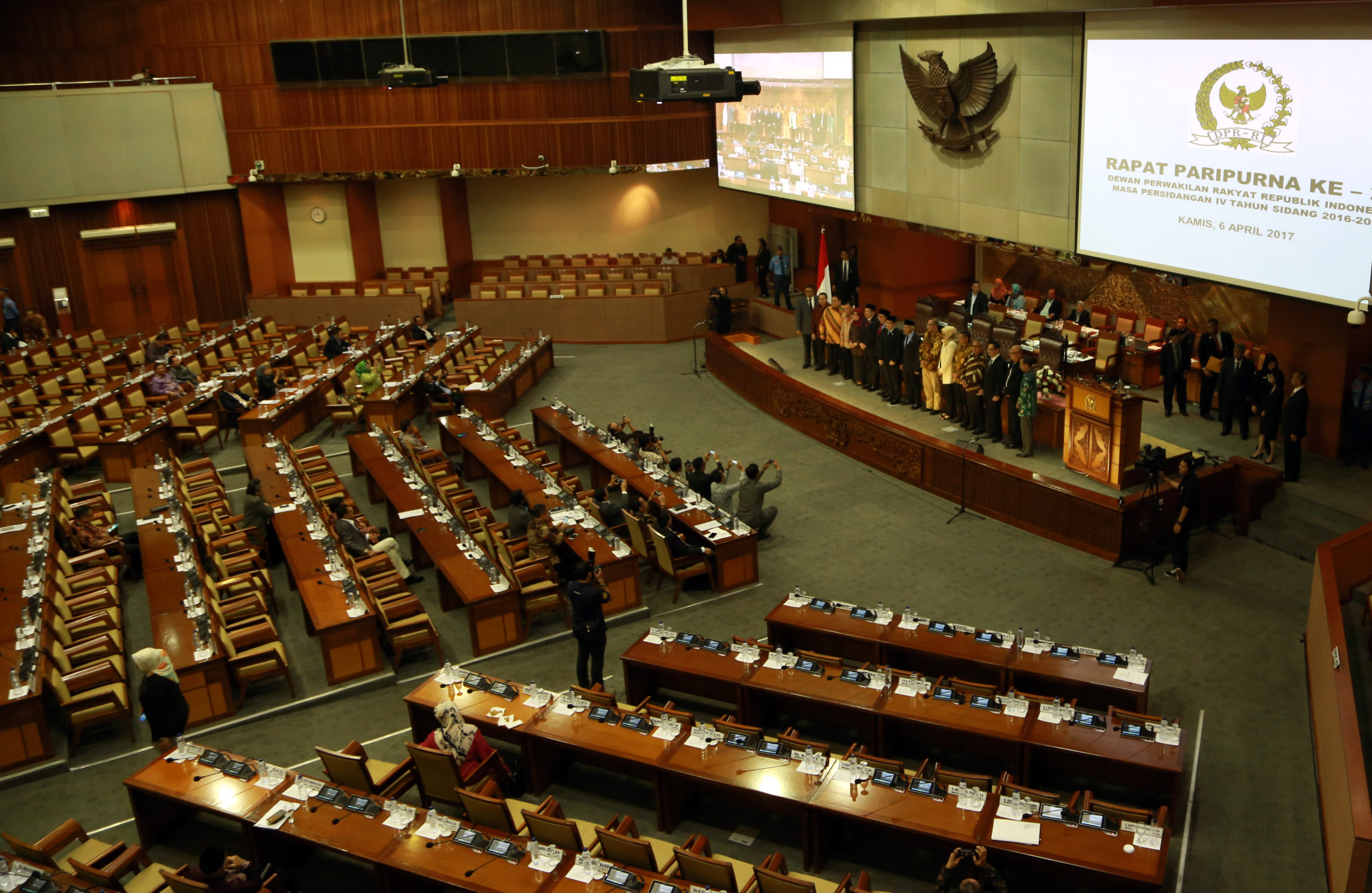 Rapat Paripuran DPR RI dengan agenda penetapan Anggota Bawaslu dan KPU terpilih periode 2017-2022 di Kompleks Parlemen Senayan, Jakarta, Kamis (6/4)