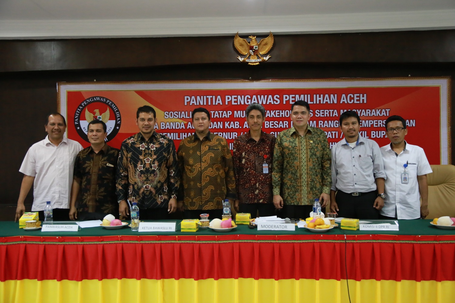 Kegiatan sosialisasi hasil kerjasama Bawaslu RI dan Panwaslih Aceh ini, menghadirkan narasumber Ketua Bawaslu RI, Anggota Komisi II DPR Arteria Dahlan, Komisioner Panwaslih Aceh Irhamsyah, dan akademisi UIN Ar-Raniry Syaiful Akmal. Pada kegiatan tersebut dihadiri sekitar 120 peserta yang berasal dari perguruan tinggi, pelajar, tokoh agama, masyarakat, tim sukses, media massa, dan lainnya.